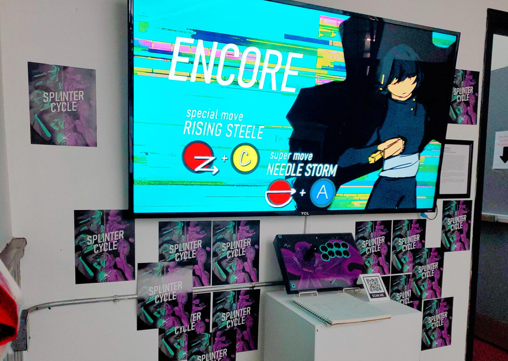 my sophomore studio project in which i decided to make a "proof of concept" for a 2D fighting game which included a cast of original characters, an animated trailer, custom fightstick art, promotional posters, and a survey for people to vote who their favorite character is accessible via QR code.