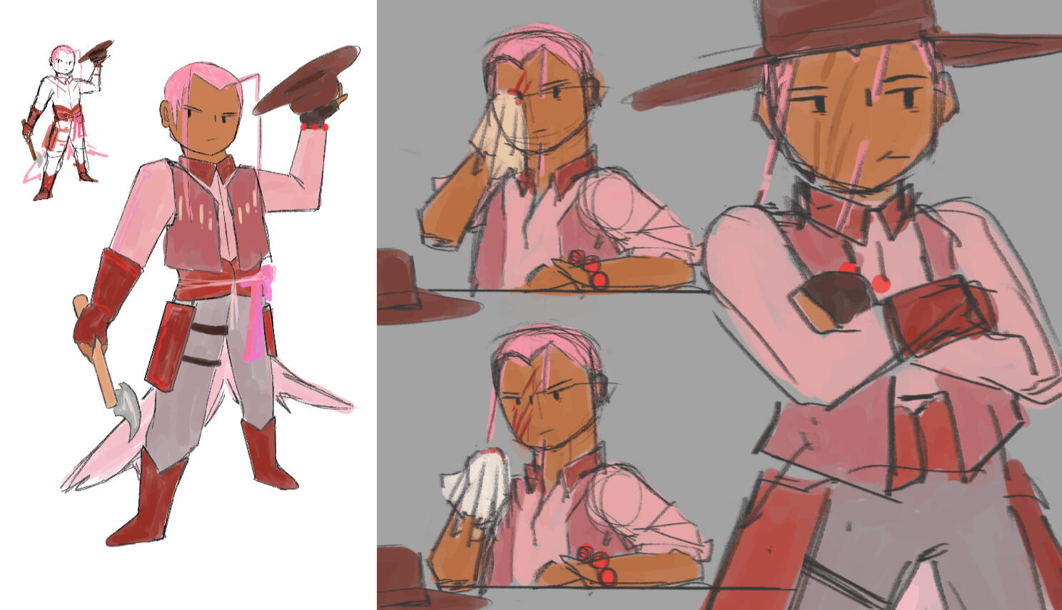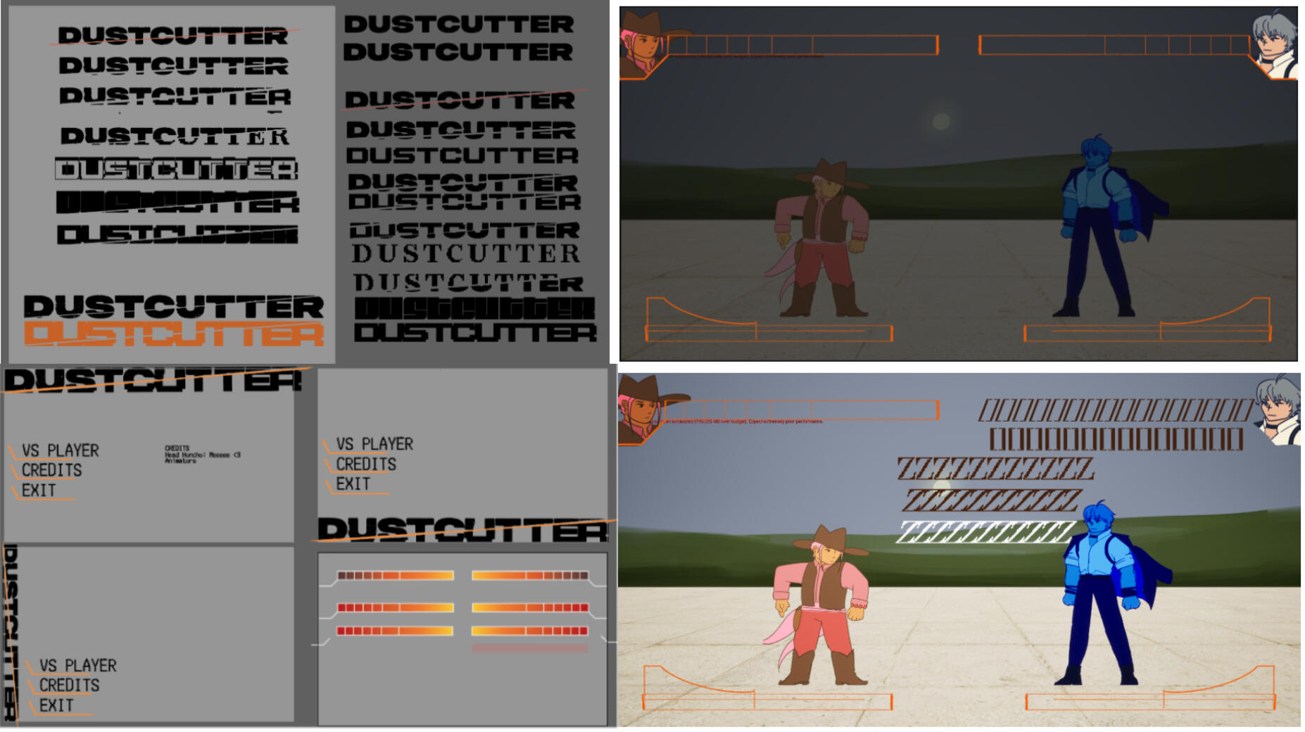 'DustCutter' is a 2D fighting game created in Unreal Engine 5 as my senior thesis at Montserrat College of Art. It was my first time making a game in that engine and the first time I've made a game at this scale period. On top with making the game, I created the character designs, posters, and refurbished an old arcade controller for the senior exhibition "Feast Your Eyes!"