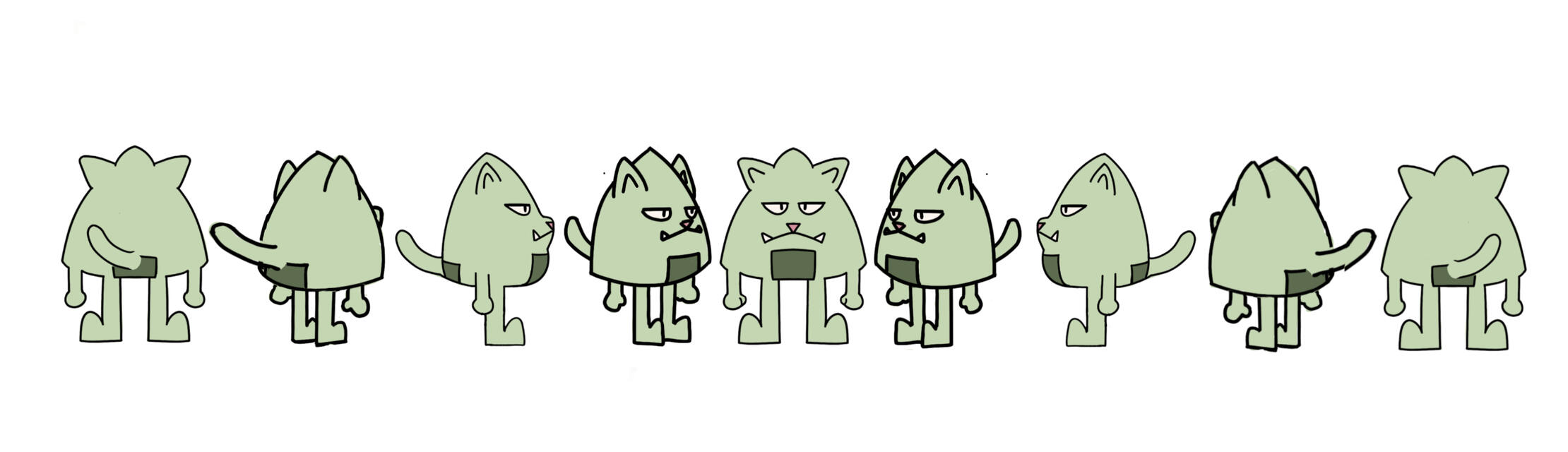 on top of being an animator for this project, i was also a production artist. the turn around sheets that i created are below.